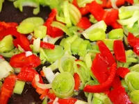 Spicy Leek Stir-Fry A quick and flavorful stir-fry featuring leeks, red bell pepper, and a spicy chili sauce. Perfect for a simple and satisfying meal.