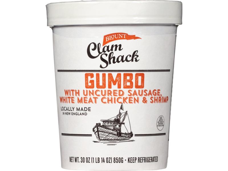 1 cup of Blount Clam Shack gumbo contains 160 Calories. The macronutrient breakdown is 42% carbs, 33% fat, and 25% protein. This is a good source of protein (18% of your Daily Value) and potassium (8% of your Daily Value).