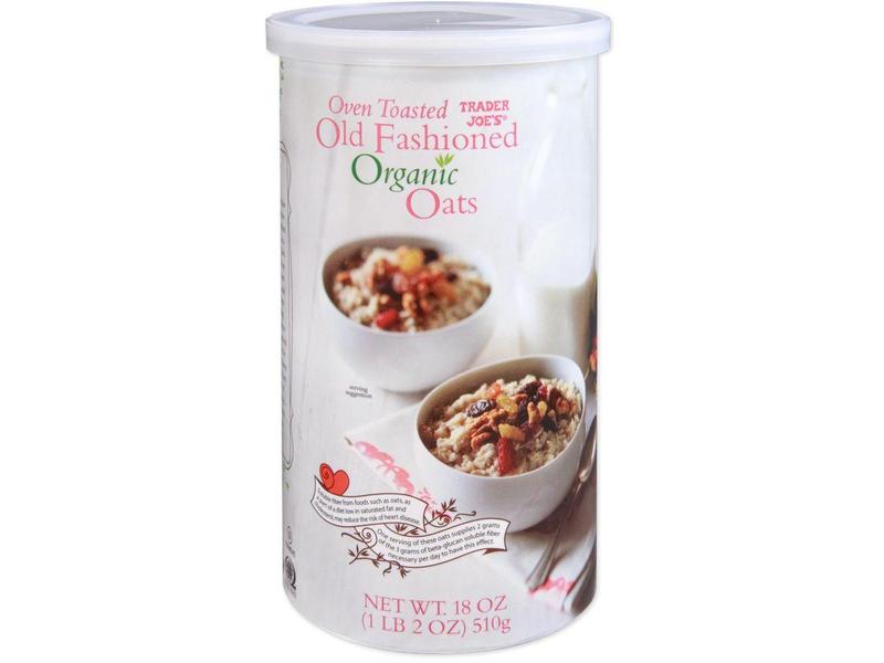 ½ cup dry of Trader Joe's old fashioned organic oats contains 160 Calories. The macronutrient breakdown is 71% carbs, 14% fat, and 15% protein. This is a good source of fiber (14% of your Daily Value).