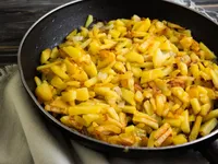 Pan-Fried Potatoes and Onions A simple and traditional dish featuring crispy pan-fried potatoes with onions, seasoned with paprika, salt and black pepper.