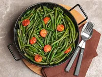 Sautéed Balsamic Green Beans and Cherry Tomatoes A simple and classic sautéed vegetable dish featuring fresh green beans and cherry tomatoes, enhanced with balsamic vinegar and dried basil. Perfect as a side dish for any meal.